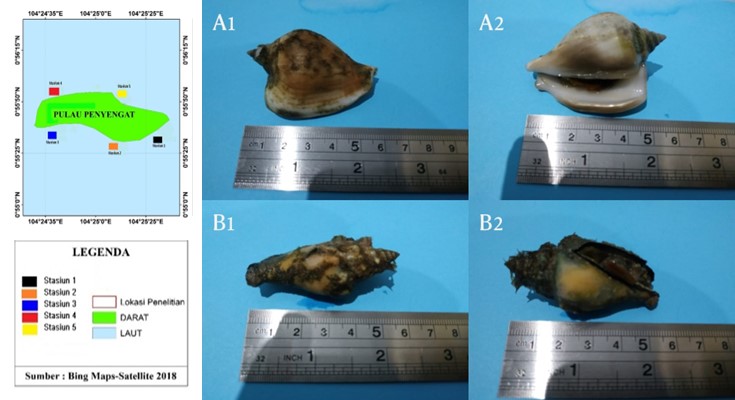 Conditions and pattern of utilization of gonggong snails in Penyengat Island waters, Tanjungpinang Kota District, Riau Islands, Indonesia This study aims to determine the conditions and patterns of utilization of snails in the Penyengat island waters, Riau Island, Indonesia. The method used was purposive sampling of 5 stations with 70 x 2 m quadratic transect for the density of the Gonggong Snail. The results found two types of snail bark species namely Laevistrombus turturella and Strombus urceus with a total density value of 0.114individual per m². The use of snail bark patterns in Penyengat Island waters, namely the size of the catch is medium to large, manual capture techniques (collected by hand), the catching area in the waters of the island is 100-200 m from the beach, the most catches found >100 individuals, season and time of catching snail barks at stinging island waters are not based on season, utilization and distribution of utilization. The snail bark resource is used for consumption and sold to collectors. Raja Wira PradanaRajaWiraPradanaFebrianti LestariFebriantiLestariSusiana SusianaSusiana Research article Open Access 17 Oct 2020 Akuatikisle: Jurnal Akuakultur, Pesisir dan Pulau-Pulau Kecil 10.29239/j.akuatikisle.4.2.41-46 PDF (485KB) 292 views Abstract 853 views Volume 4, No. 2, P: 41-46